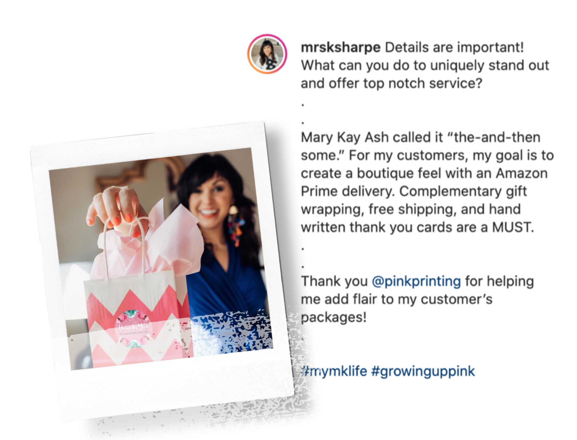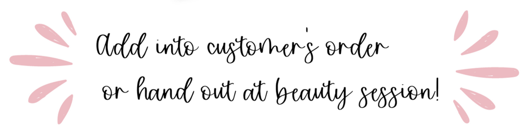 Prints to put in customer orders or hand out while warm chatting to invite to giveaways, freebies, or monthly promos.